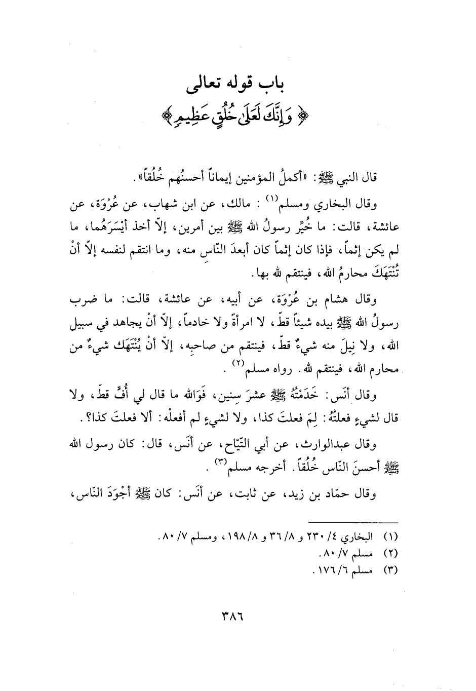 باب قوله تعالى: {وَإِنَّكَ لَعَلَى خُلُقٍ عَظِيم} :