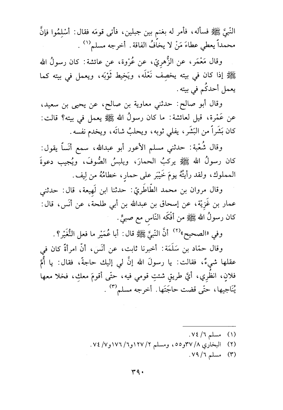 وقال أبو صالح: حدثني معاوية بن صالح، عن يحيى بن سعيد، عن عمرة، قيل لعائشة: ما كان رسول الله صلى الله عليه وسلم يعمل في بيته؟ قالت: كان بشرا من البشر، يفلي ثوبه، ويحلب شاتهن ويخدم نفسه.