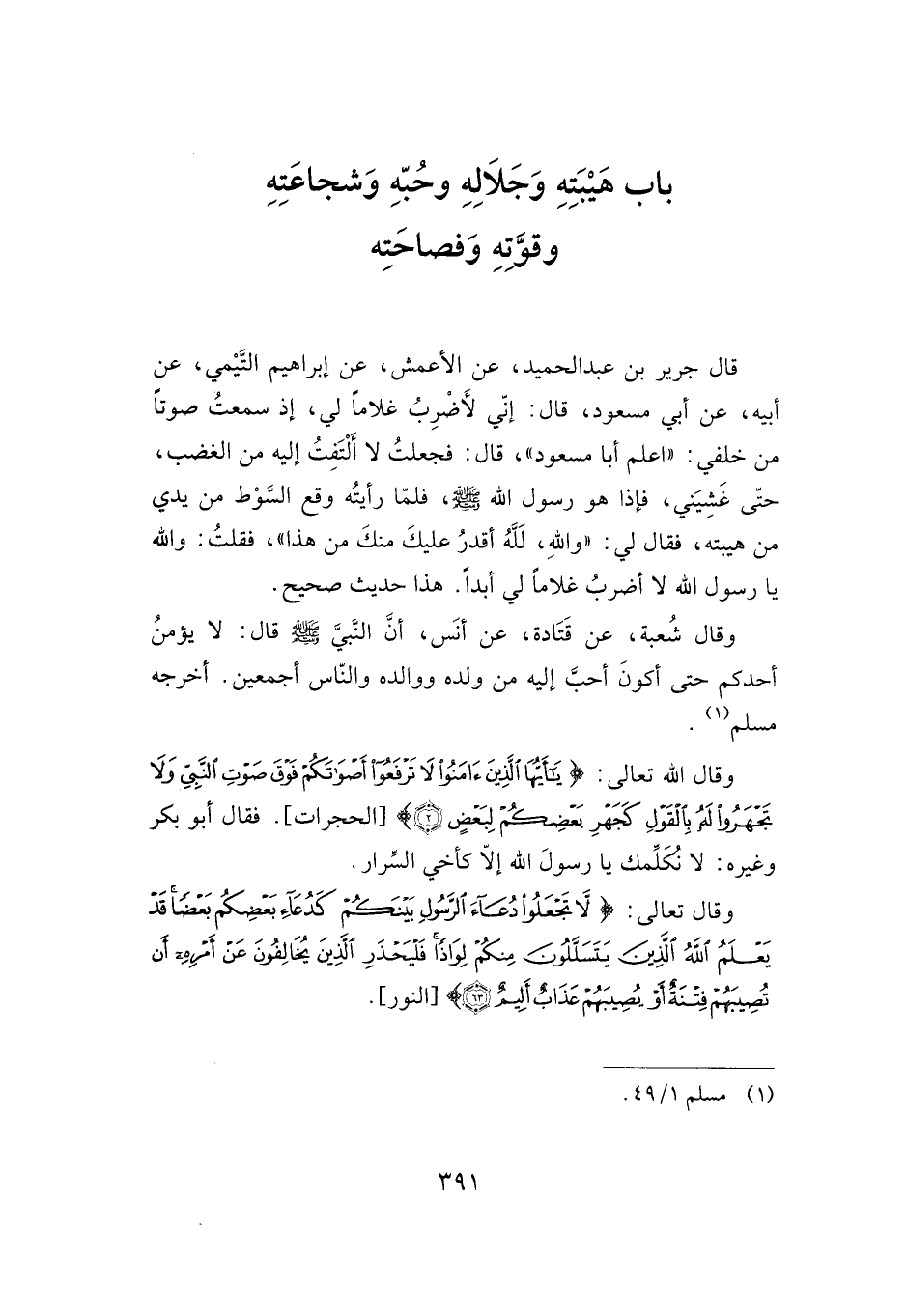 باب هيبته وجلاله وحبه وشجاعته وقوته وفصاحته: