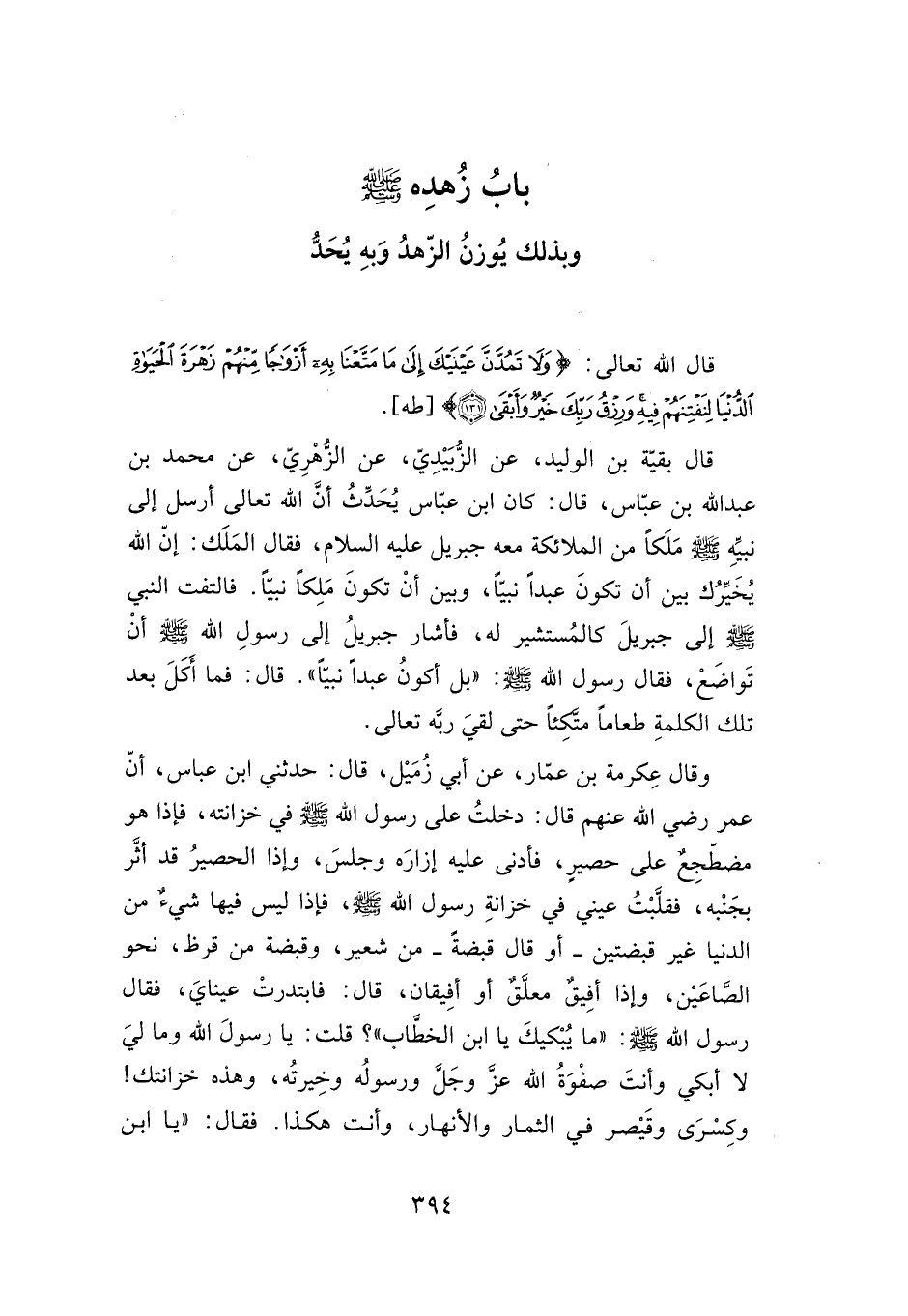 باب زهده صلى الله عليه وسلم: