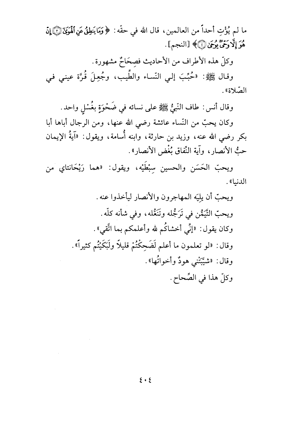 وقال صلى الله عليه وسلم: "حبب إلي النساء والطيب، وجعل قرة عيني في الصلاة".
