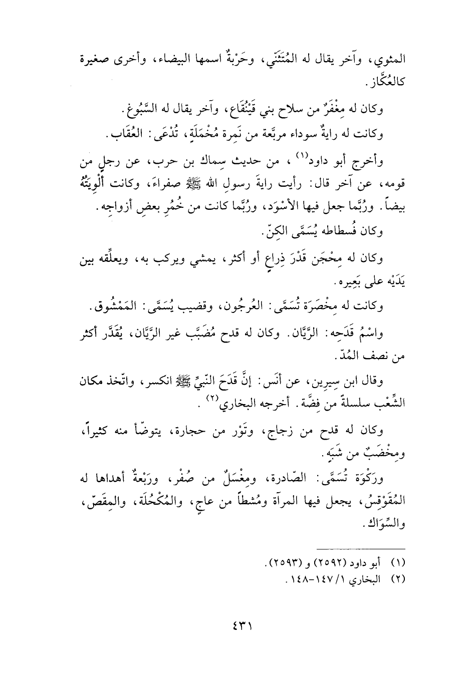 واسم قدحه: الريان. وكان له قدح مضبب غير الريان، يقدر أكثر من نصف المد.