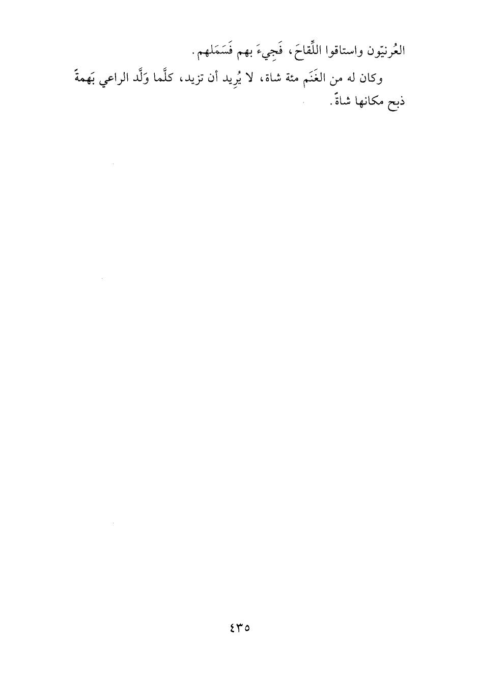 وكان له من الغنم مائة شاة، لا يريد أن تزيد، كلما ولد الراعي بهمة ذبح مكانها شاة.