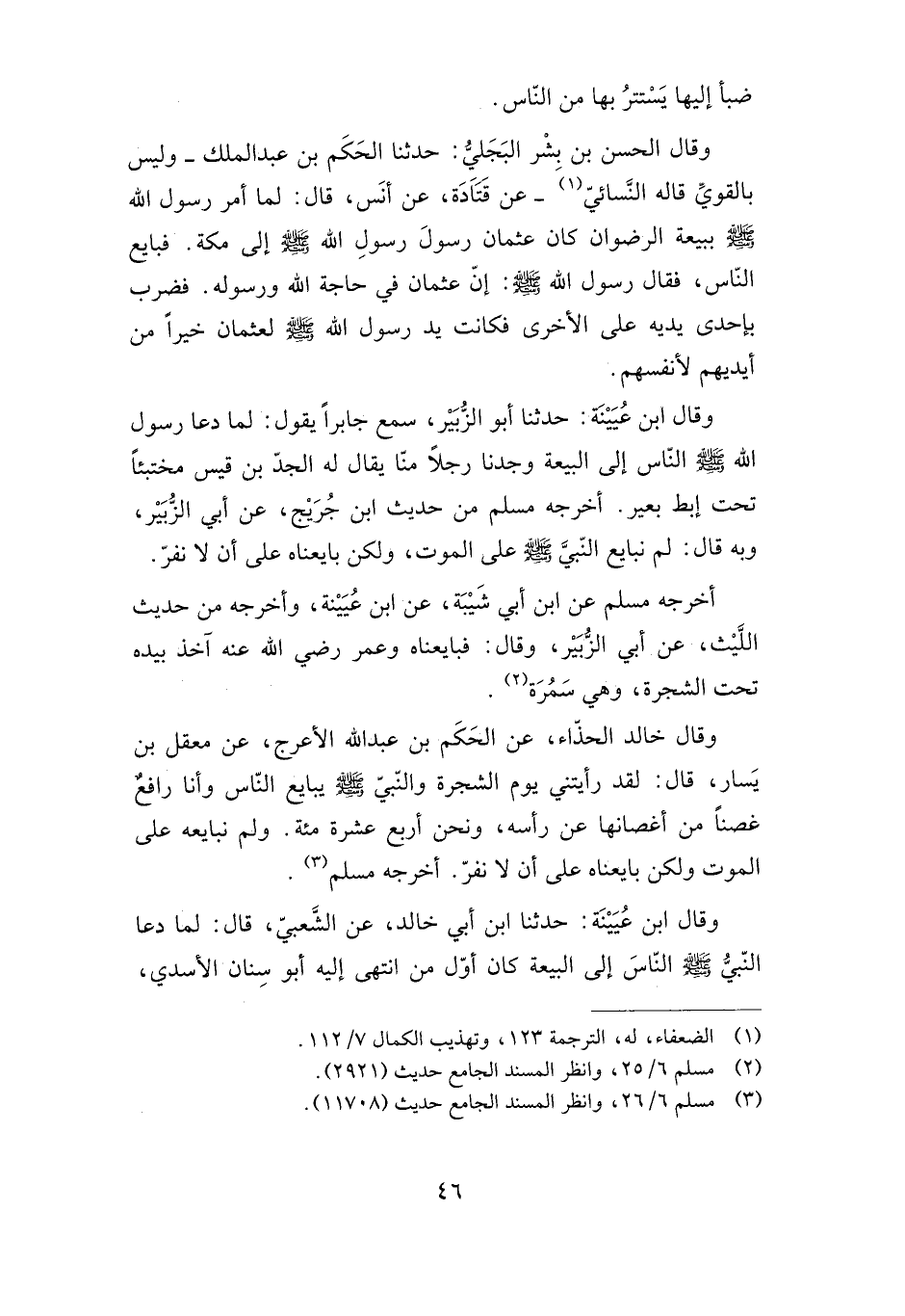 أخرجه مسلم عن ابن أبي شيبة، عن ابن عيينة، وأخرجه من حديث الليث، عن أبي الزبير، وقال: فبايعناه وعمر -رضي الله عنه- آخذ بيده تحت الشجرة، وهي سمرة.