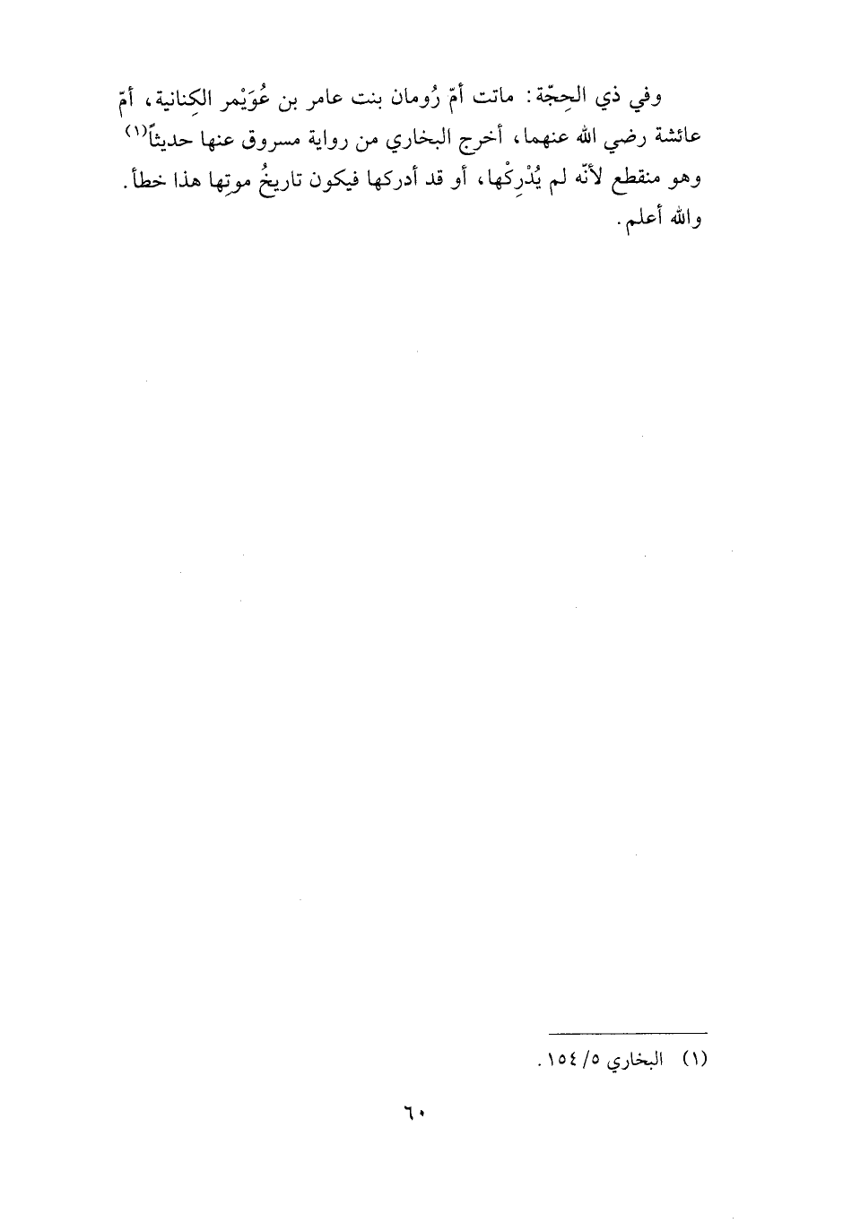 وفي ذي الحجة: ماتت أم رومان بنت عامر بن عويمر الكنانية، أم عائشة -رضي الله عنهما- أخرج البخاري من رواية مسروق عنها حديثا وهو منقطع؛ لأنه لم يدركها، أو قد أدركها فيكون تاريخ موتها هذا خطأ. والله أعلم.