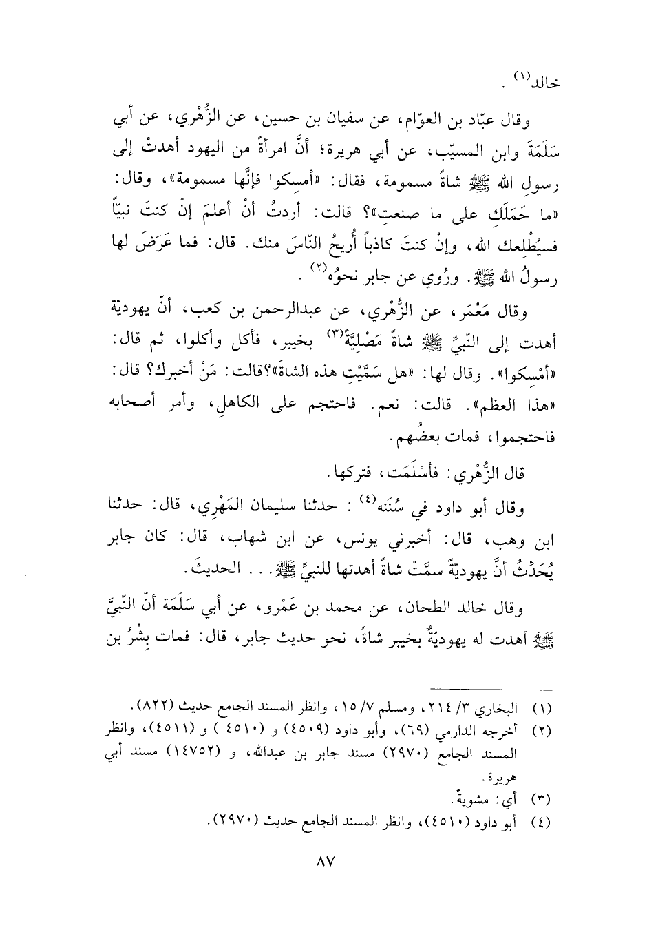 وقال أبو داود في سننه: حدثنا سليمان المهري، قال: حدثنا ابن وهب، قال: أخبرني يونس، عن ابن شهاب، قال: كان جابر يحدث أن يهودية سمت شاة أهدتها للنبي صلى الله عليه وسلم ...