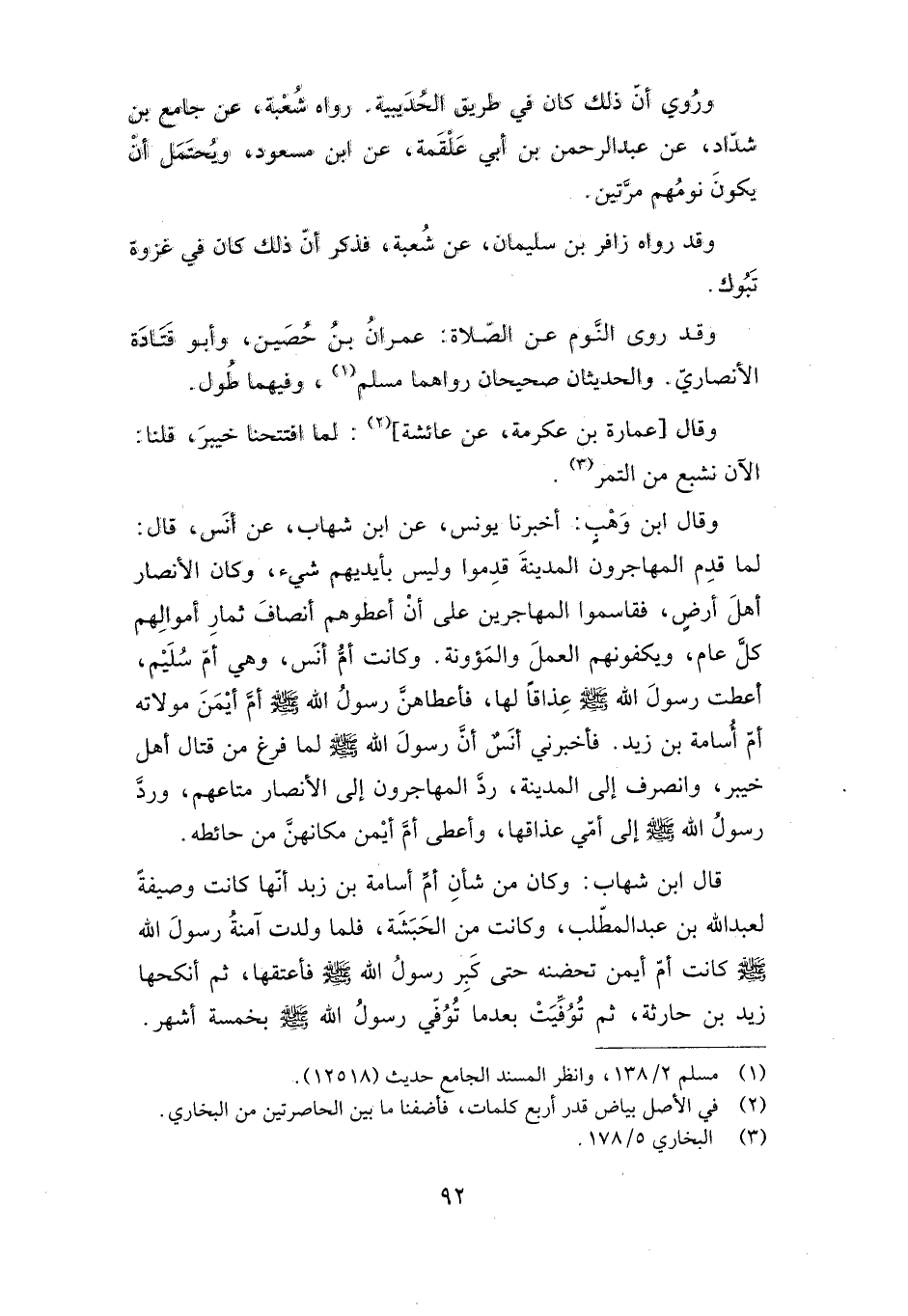 قال ابن شهاب: وكان من شأن أم أسامة بن زيد أنها كانت وصيفة لعبد الله بن عبد المطلب، وكانت من الحبشة، فلما ولدت آمنة رسول الله صلى الله عليه وسلم كانت أم أيمن تحضنه حتى كبر رسول الله صلى الله عليه وسلم فأعتقها، ثم أنكحها زيد بن حارثة، ثم توفيت بعدما توفي رسول الله صلى الله عليه وسلم بخمسة أشهر.
