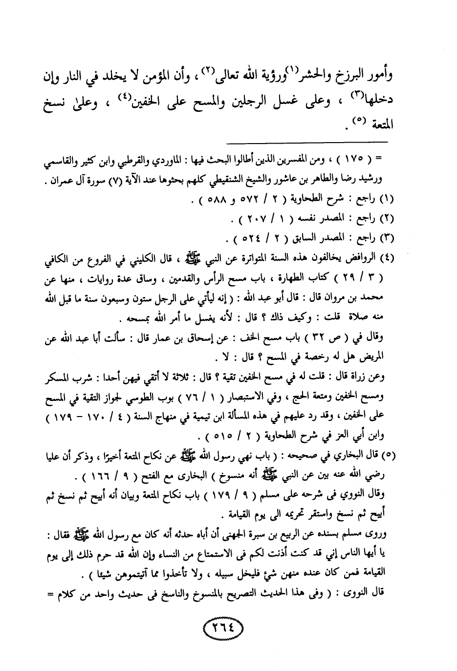 وأمور البرزخ والحشر ورؤية الله تعالى، وأن المؤمن لا يخلد في النار وإن دخلها، وعلى غسل الرجلين والمسح على الخفين،