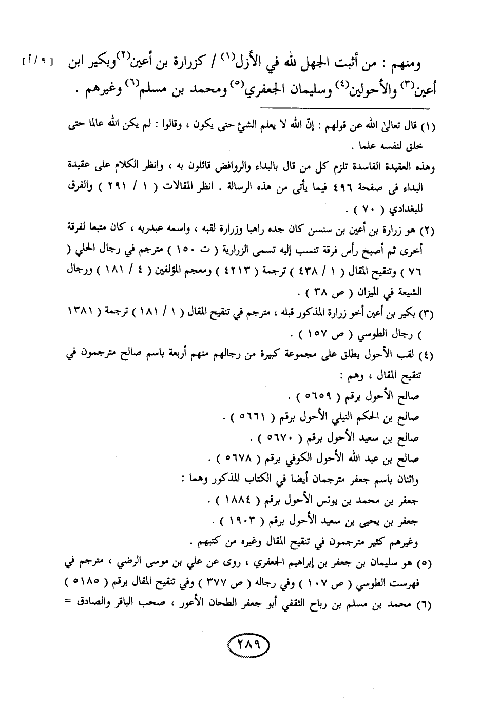 ومنهم: من أثبت الجهل لله في الأزل كزرارة بن أعين وبكير بن أعين والأحولين وسليمان الجعفري ومحمد بن