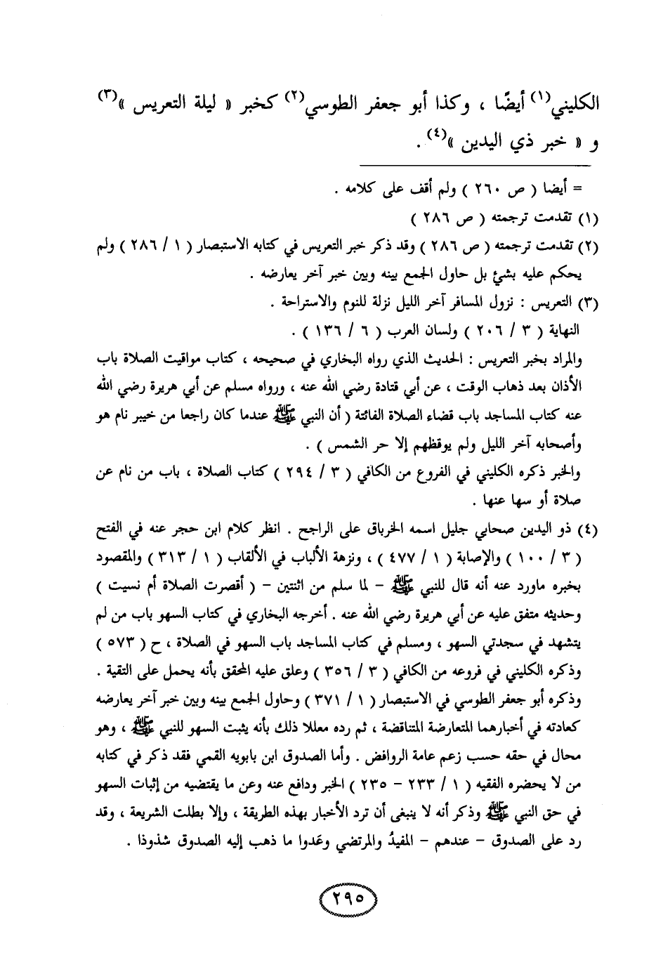 الكليني أيضا، وكذا أبو جعفر الطوسي كخبر " ليلة التعريس " و " خبر ذي اليدين ".