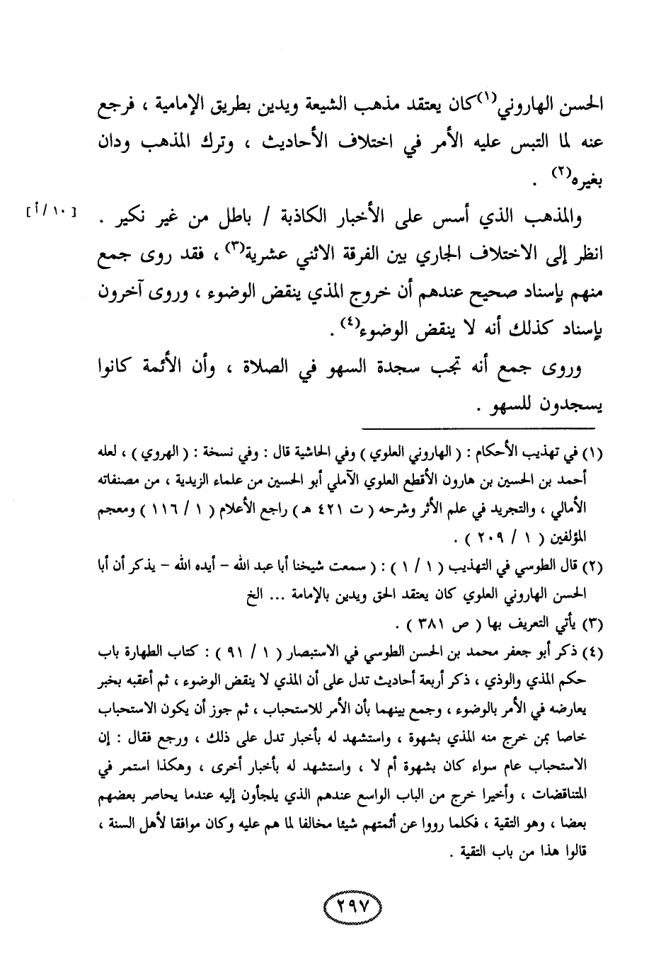 والمذهب الذي أسس على الأخبار الكاذبة باطل من غير نكير. انظر إلى الاختلاف الجاري بين الفرقة الاثني عشرية، فقد روى جمع منهم بإسناد صحيح عندهم أن خروج المذي ينقض الوضوء، وروى آخرون بإسناد كذلك أنه لا ينقض الوضوء.
