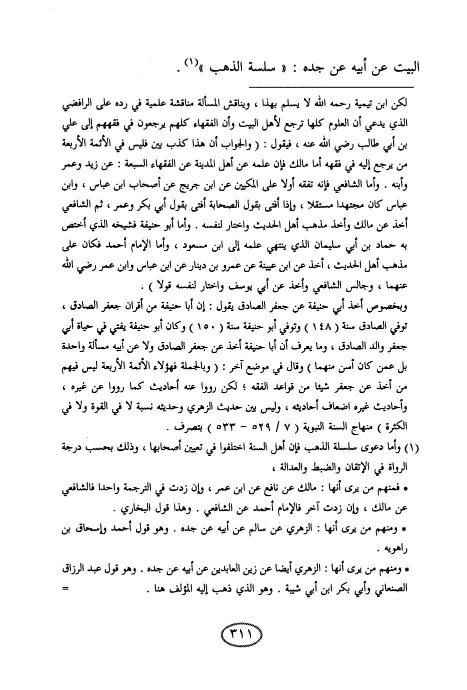 البيت عن أبيه عن جده: " سلسلة الذهب ".