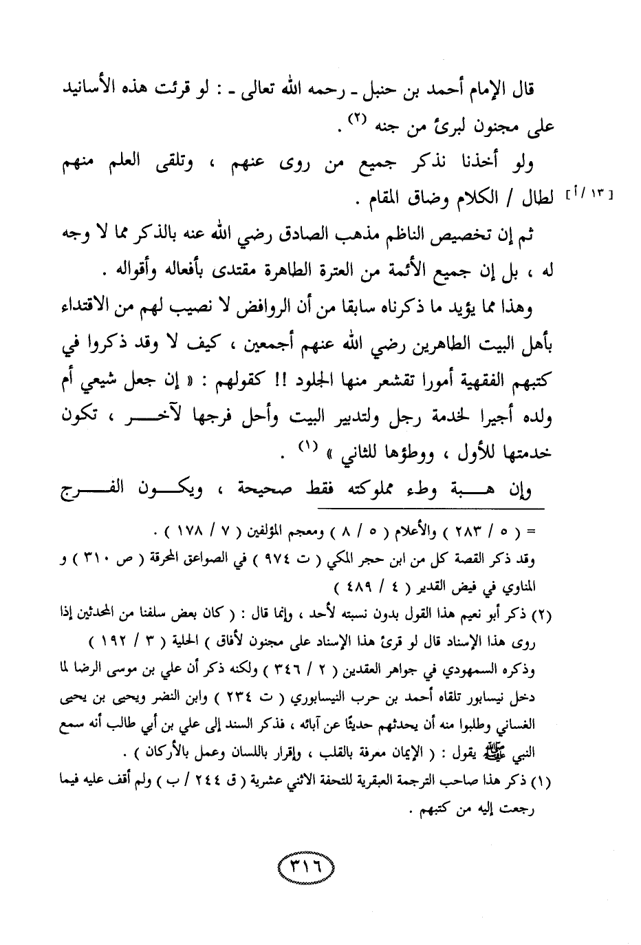 ثم إن تخصيص الناظم مذهب الصادق رضي الله عنه بالذكر مما لا وجه له، بل إن جميع الأئمة من العترة الطاهرة مقتدى بأفعاله وأقواله.