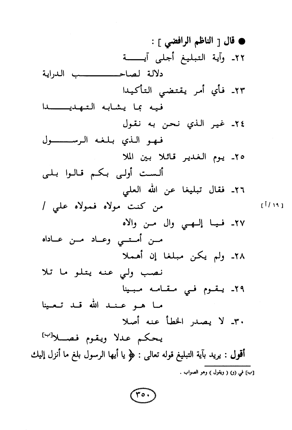 22 - وآية التبليغ أجلى آية ... دلالة لصاحب الدراية