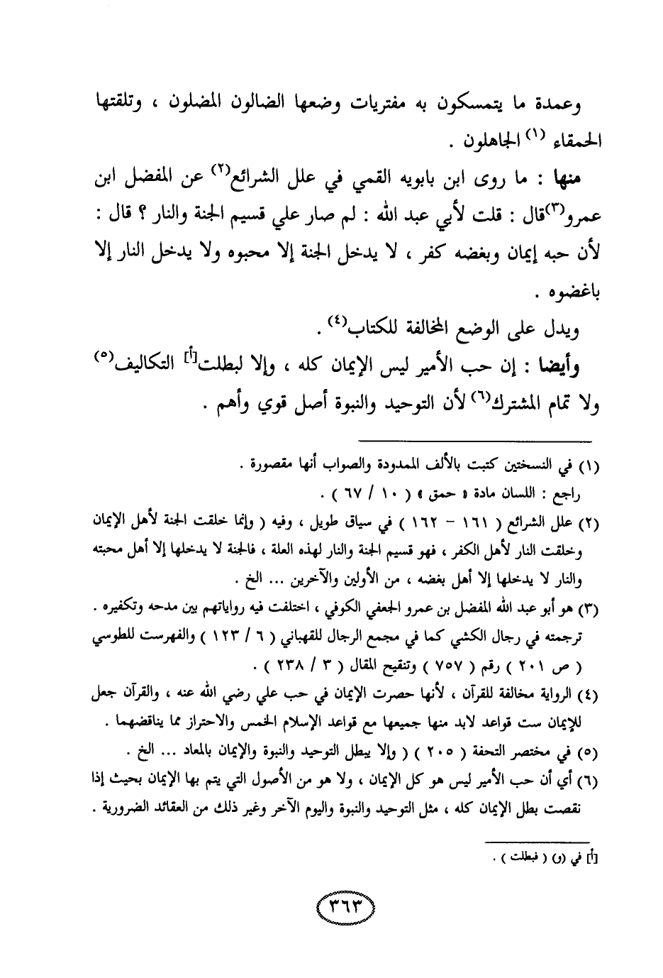 وأيضا: إن حب الأمير ليس الإيمان كله، وإلا لبطلت التكاليف، ولا تمام المشترك؛ لأن التوحيد والنبوة أصل قوي وأهم.