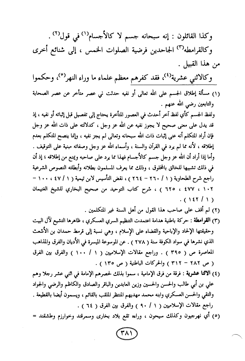 وكالقرامطة الجاحدين فرضية الصلوات الخمس، إلى شنائع أخرى من هذا القبيل.