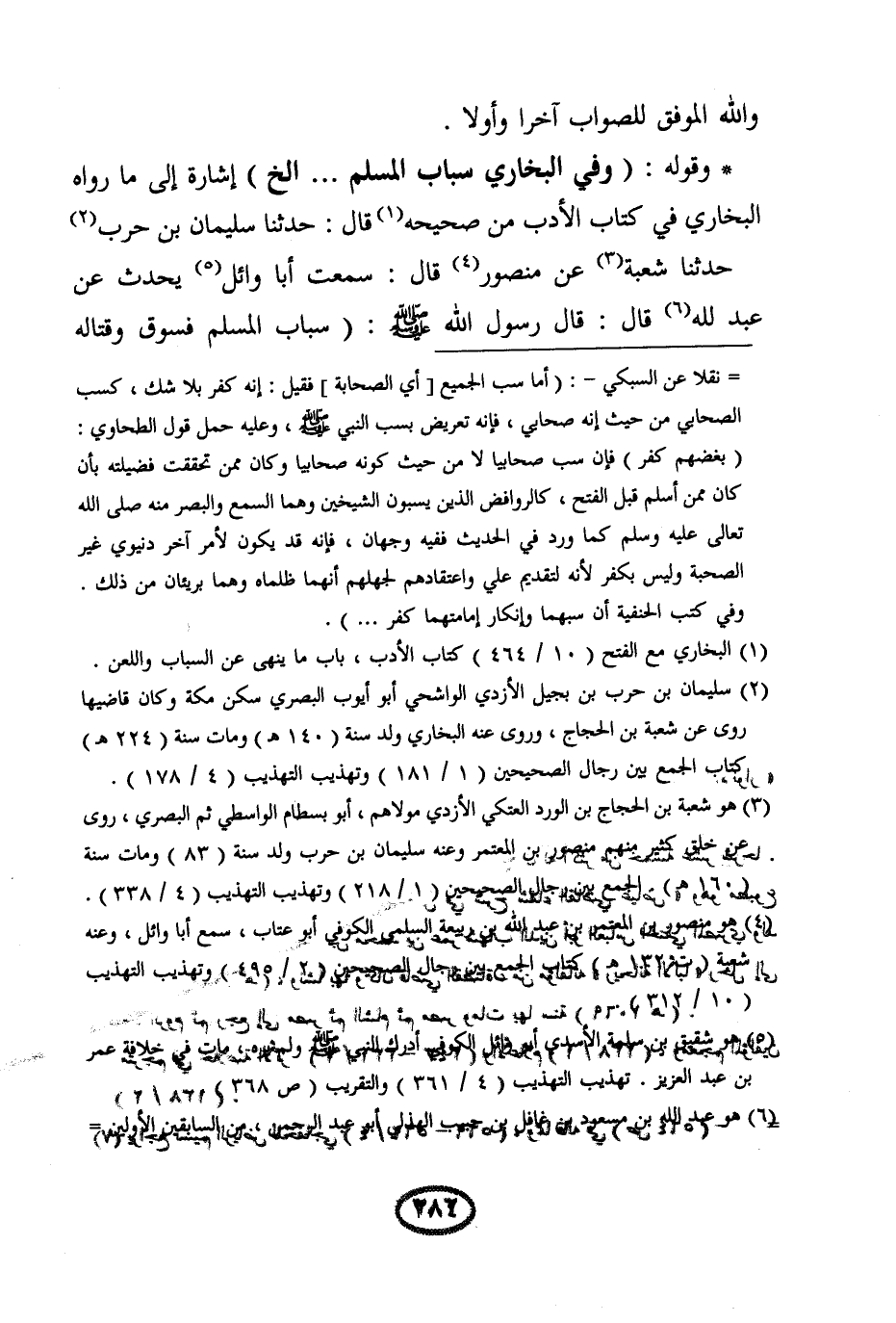 * وقوله: (وفي البخاري سباب المسلم ... إلخ) إشارة إلى ما رواه البخاري في كتاب الأدب من صحيحه.
