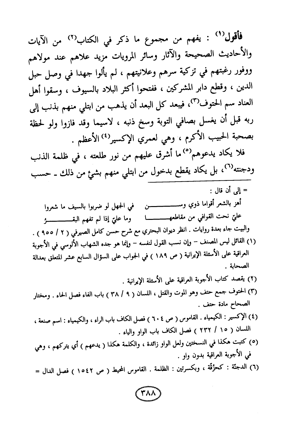 فأقول: يفهم من مجموع ما ذكر في الكتاب من الآيات والأحاديث الصحيحة والآثار وسائر المرويات مزيد علاهم عند مولاهم ووفور رغبتهم في تزكية سرهم وعلانيتهم، لم يألوا جهدا في وصل حبل الدين، وقطع دابر المشركين، ففتحوا أكثر البلاد بالسيوف، وسقوا أهل العناد سم الحتوف.
