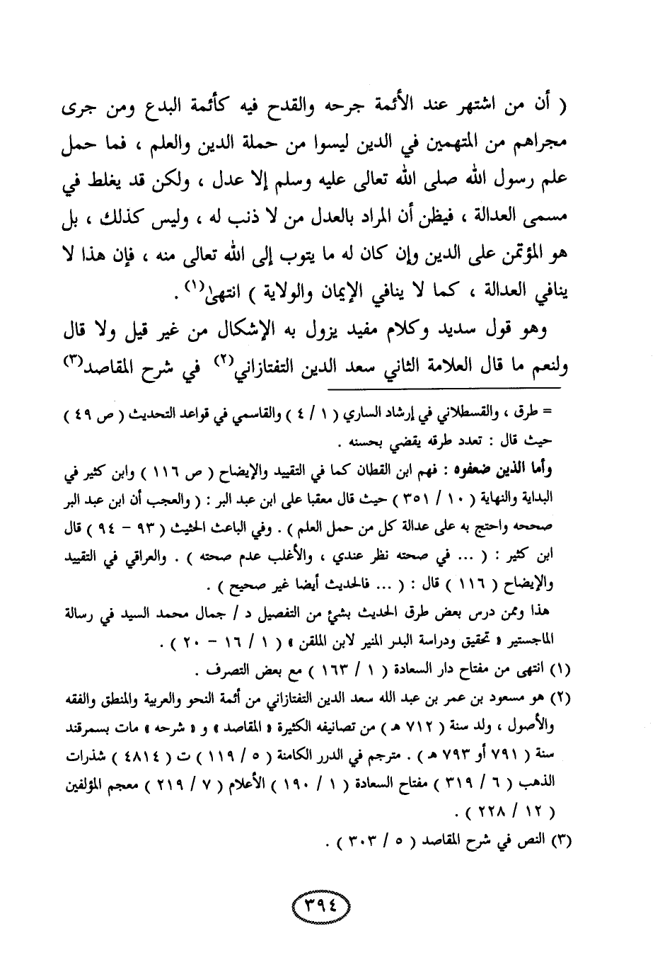 ولنعم ما قال العلامة الثاني سعد الدين التفتازاني في شرح المقاصد