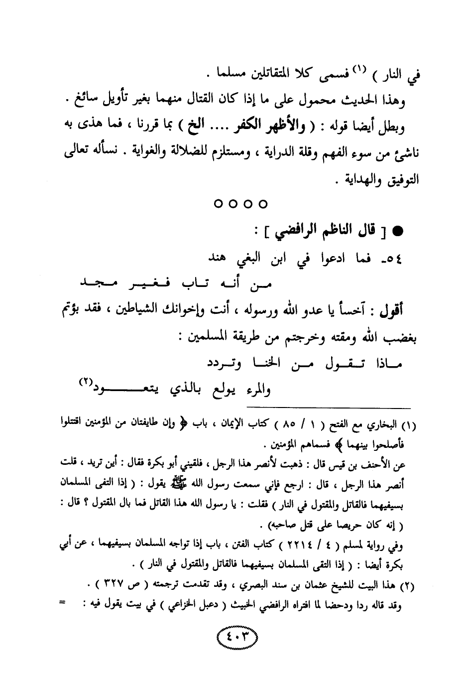 في النار» ) فسمى كلا المتقاتلين مسلما. وهذا الحديث محمول على ما إذا كان القتال منهما بغير تأويل سائغ.