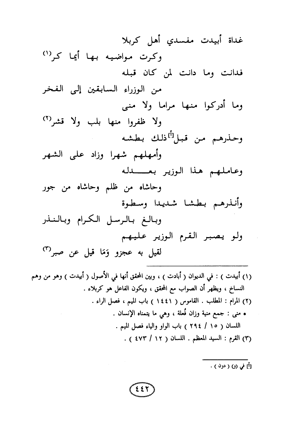 ولو يصبر القرم الوزير عليهم ... لقيل به عجز وما قيل عن صبر