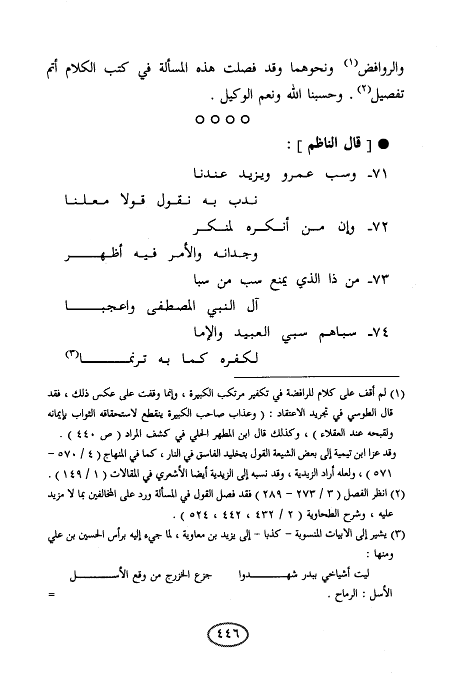 71 - وسب عمرو ويزيد عندنا ... ندب به نقول قولا معلنا
