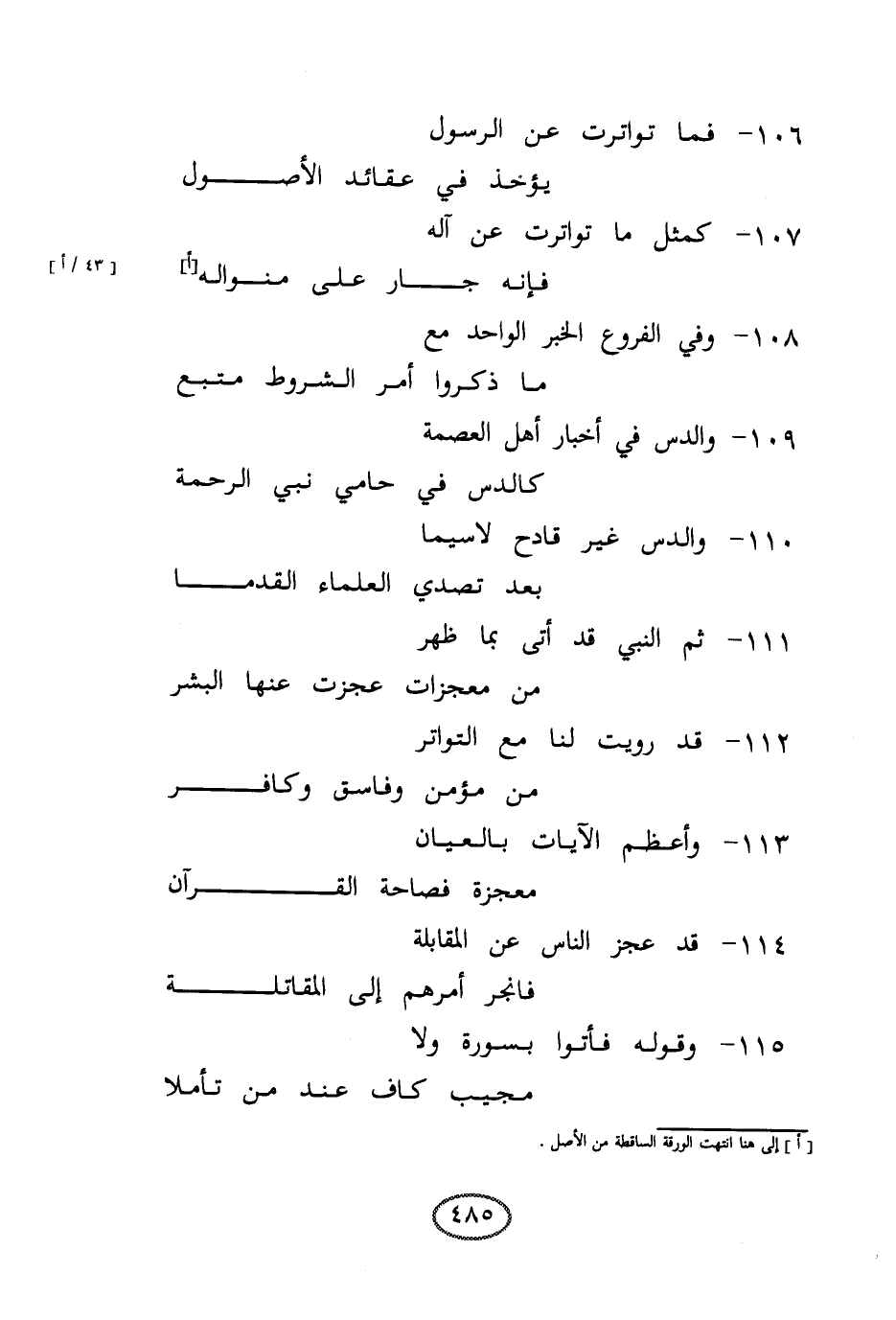 109 - والدس في أخبار أهل العصمة ... كالدس في حامي نبي الرحمة