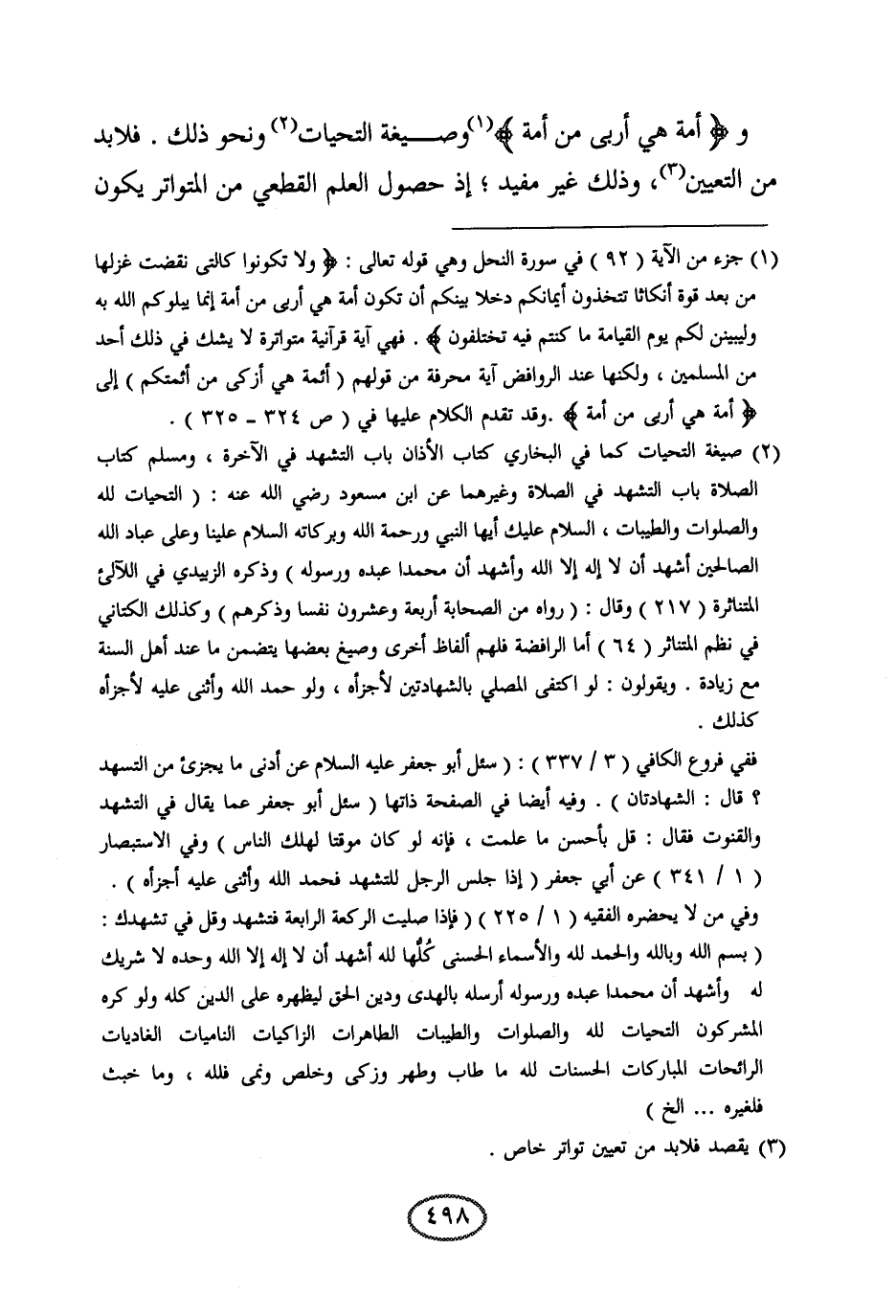 و {أُمَّةٌ هِيَ أَرْبَى مِنْ أُمَّةٍ} وصيغة التحيات ونحو ذلك.