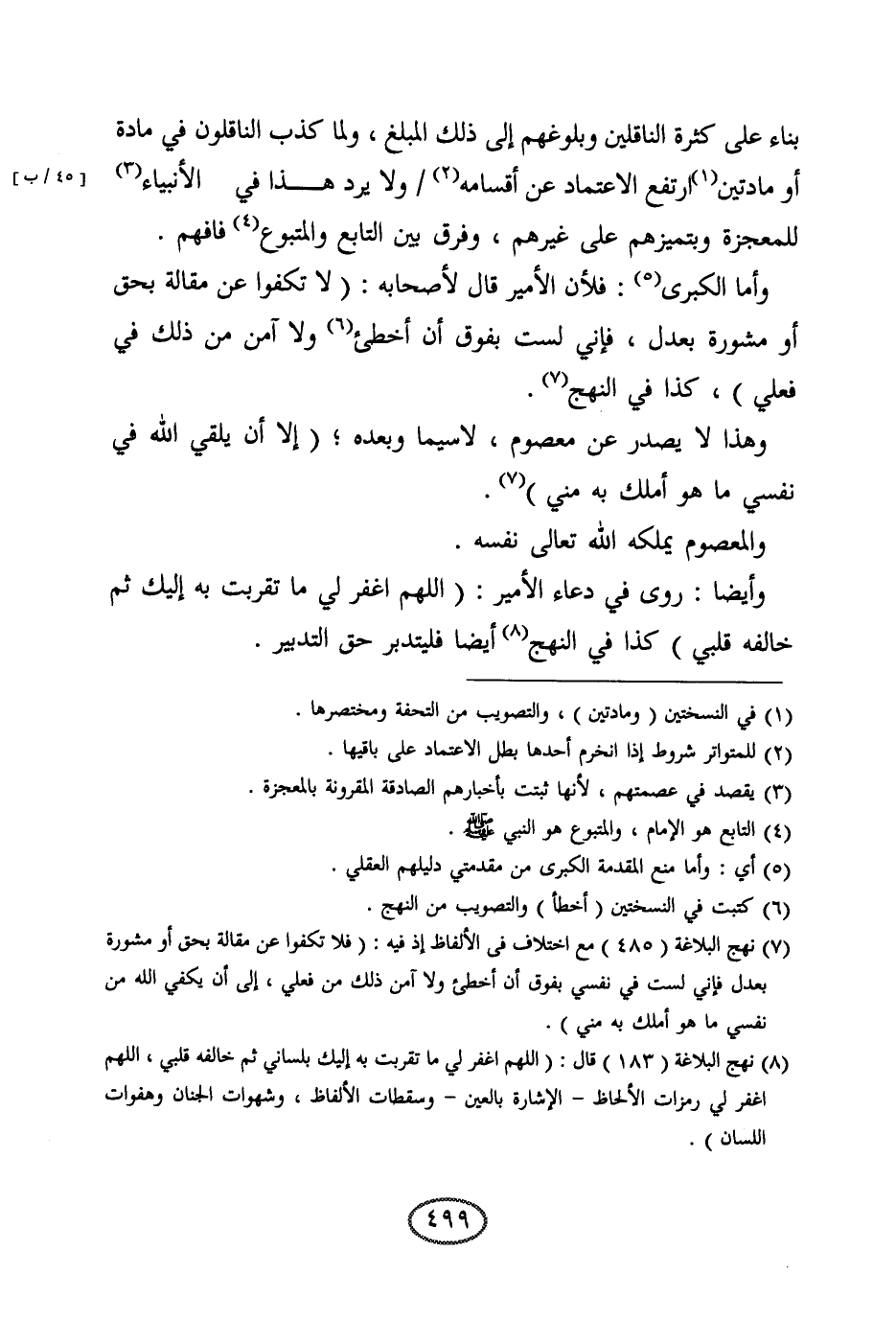 واما الكبرى: فلأن الأمير قال لأ صحابه: (لا تكفوا عن مقالة بحق أو مشورة بعدل، فإني لست بفوق أن أخطئ ولا آمن من ذلك في فعلي) ، كذا في النهج.