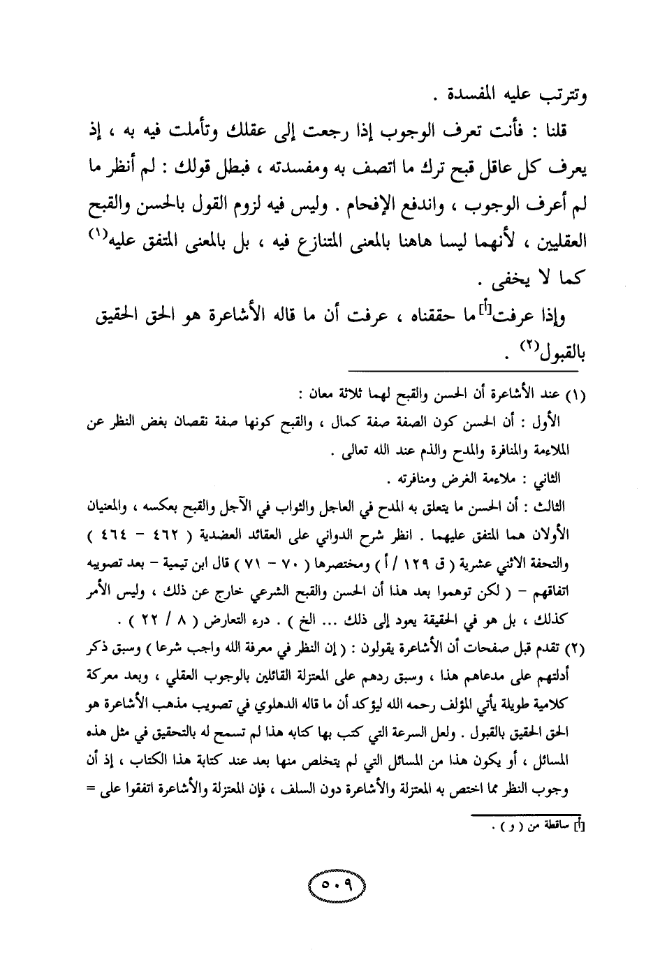 وتترتب عليه المفسدة. قلنا: فأنت تعرف الوجوب إذا رجعت إلى عقلك وتأملت فيه به، إذ يعرف كل عاقل قبح ترك ما اتصف به ومفسدته، فبطل قولك: لم أنظر ما لم أعرف الوجوب، واندفع الإفحام. وليس فيه لزوم القول بالحسن والقبح العقليين، لأنهما ليسا هاهنا بالمعنى المتنازع فيه، بل بالمعنى المتفق عليه