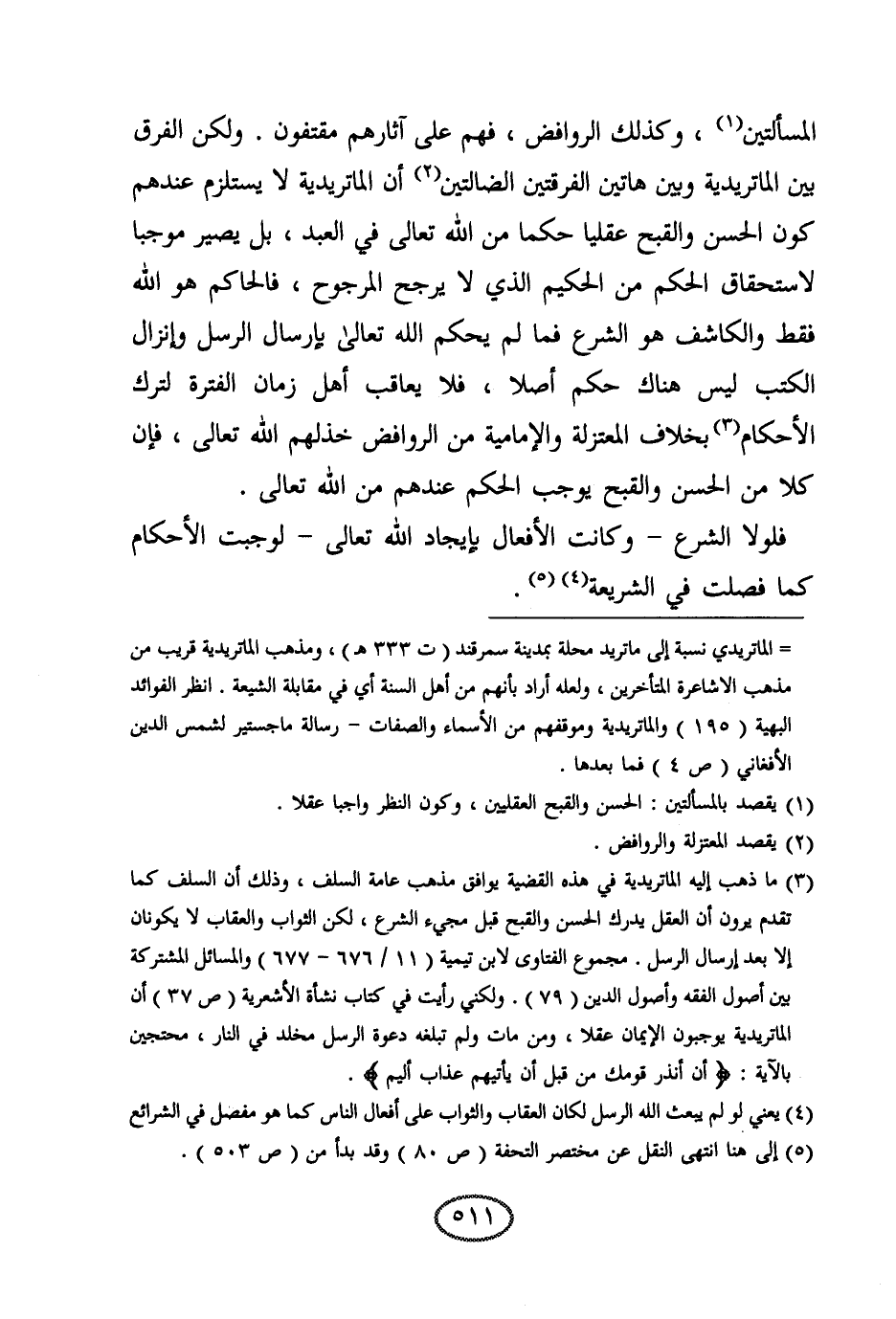 المسألتين، وكذلك الروافض، فهم على آثارهم مقتفون. ولكن الفرق بين الماتريدية وبين هاتين الفرقتين الضالتين أن الماتريدية لا يستلزم عندهم كون الحسن والقبح عقليا حكما من الله تعالى في العبد، بل يصير موجبا