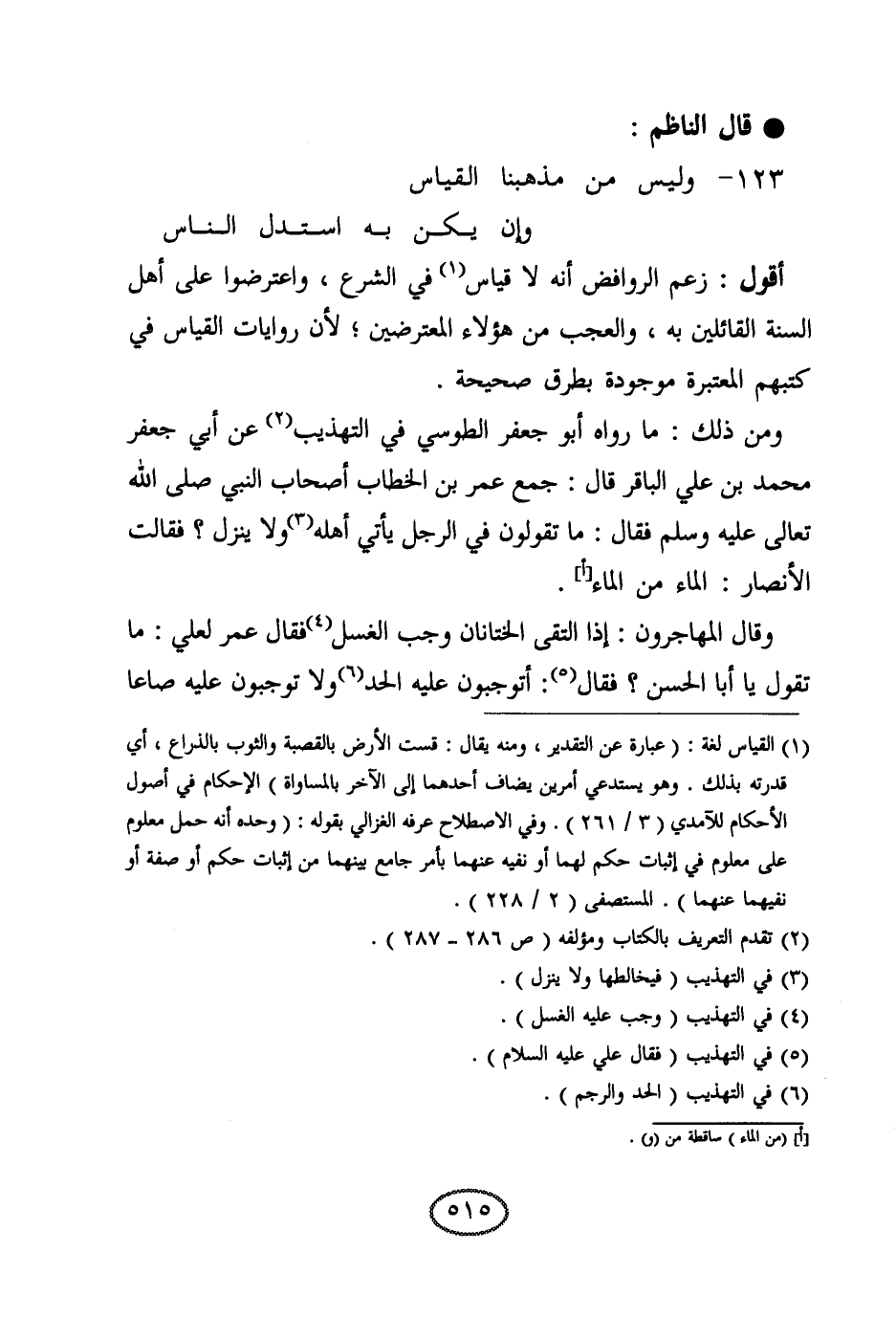 123 - وليس من مذهبنا القياس ... وإن يكن به استدل الناس