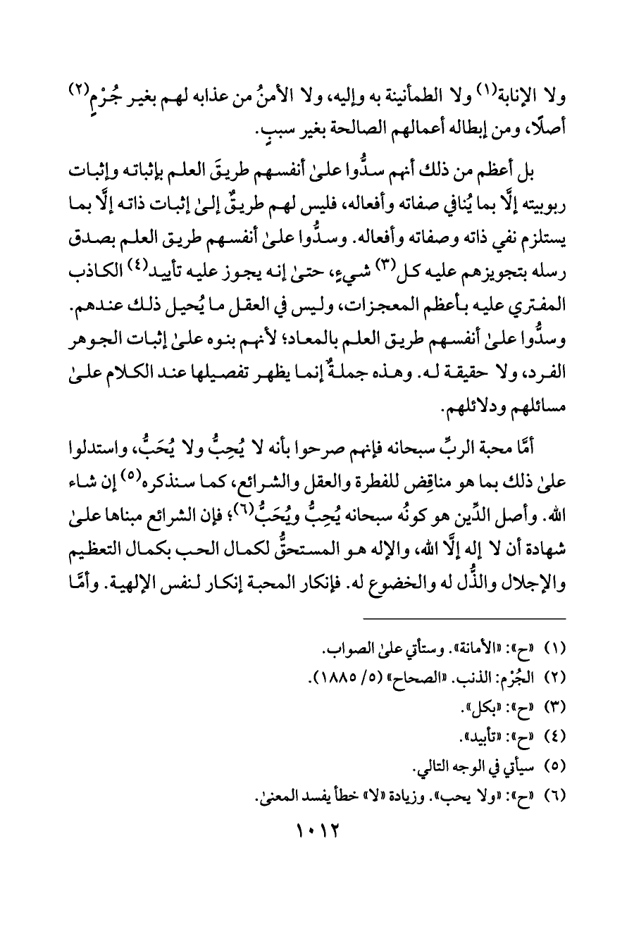 (¬٦) «ح»: «ولا يحب». وزيادة «لا» خطأ يفسد المعنى.