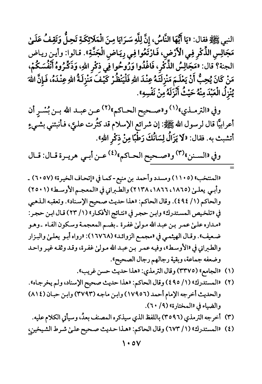 قالوا: وأين رياض الجنة؟ قال: «مَجَالِسُ الذِّكْرِ، فَاغْدُوا وَرُوحُوا فِي ذِكْرِ اللَّهِ، وَذَكِّرُوهُ أَنْفُسَكُمْ، مَنْ كَانَ يُحِبُّ أَنْ يَعْلَمَ مَنْزِلَتَهُ عِنْدَ اللَّهِ فَلْيَنْظُرْ كَيْفَ مَنْزِلَةُ اللَّهِ عِنْدَهُ، فَإِنَّ اللَّهَ يُنْزِلُ الْعَبْدَ مِنْهُ حَيْثُ أَنْزَلَهُ مِنْ نَفْسِهِ».