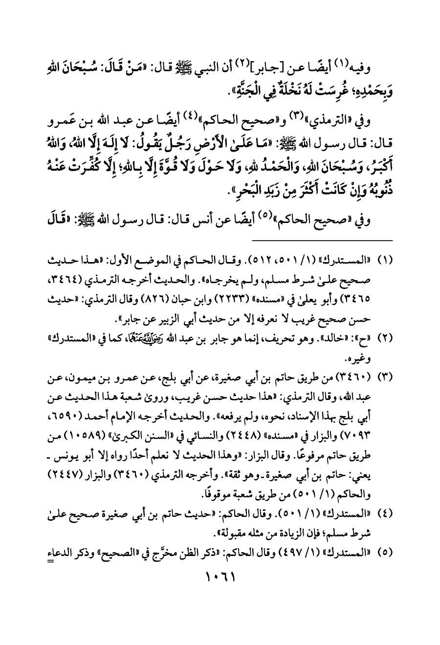 (¬١) «المستدرك» (١/ ٥٠١، ٥١٢). وقال الحاكم في الموضع الأول: «هذا حديث صحيح على شرط مسلم، ولم يخرجاه». والحديث أخرجه الترمذي (٣٤٦٤، ٣٤٦٥) وأبو يعلى في «مسنده» (٢٢٣٣) وابن حبان (٨٢٦) وقال الترمذي: «حديث حسن صحيح غريب لا نعرفه إلا من حديث أبي الزبير عن جابر».