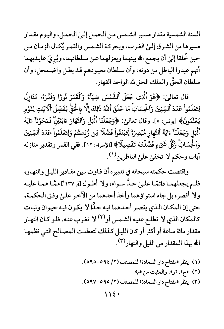 السنة الشمسية مقدار مسير الشمس من الحمل إلى الحمل، واليوم مقدار مسيرها من الشرق إلى الغرب، وبحركة الشمس والقمر يُكال الزمان من حين خُلقا إلى أن يجمع الله بينهما ويعزلهما عن سلطانهما، ويُرِيَ عابديهما أنهم عبدوا الباطل من دونه، وأن سلطان معبودهم قد بطل واضمحل، وأن سلطان الحقِّ والملك الحق لله الواحد القهار.