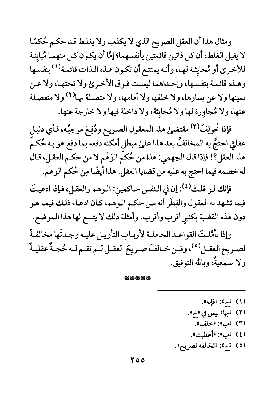 فإنك لو قلتَ (¬٤): إن في النفس حاكمينِ: الوهم والعقل، فإذا ادعيتَ فيما تشهد به العقول والفِطَر أنه من حكم الوهم، كان ادعاء ذلك فيما هو دون هذه القضية بكثيرٍ أقرب وأقرب. وأمثلة ذلك لا يتسع لها هذا الموضع.