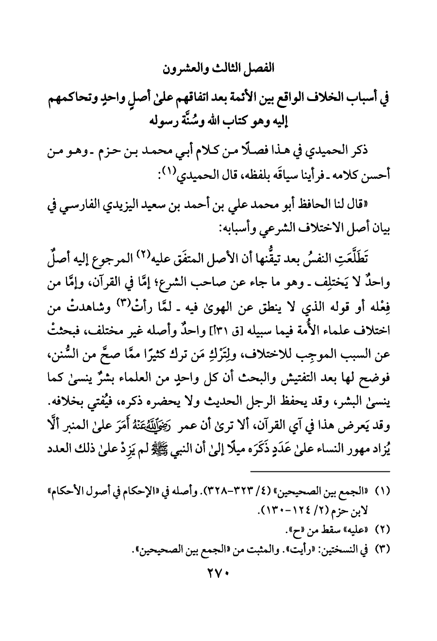(¬١) «الجمع بين الصحيحين» (٤/ ٣٢٣ - ٣٢٨). وأصله في «الإحكام في أصول الأحكام» لابن حزم (٢/ ١٢٤ - ١٣٠).