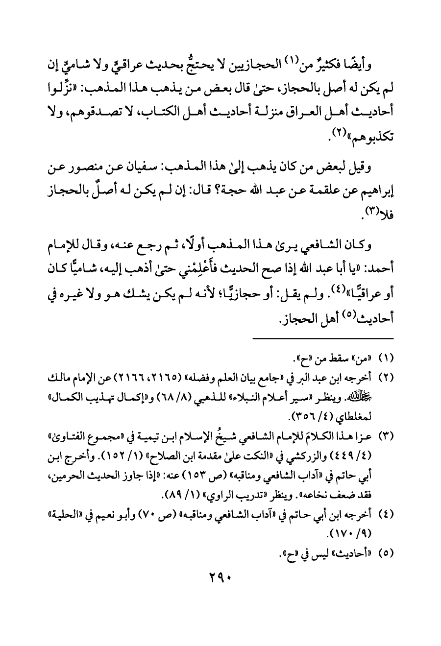 وكان الشافعي يرى هذا المذهب أولًا، ثم رجع عنه، وقال للإمام أحمد: «يا أبا عبد الله إذا صح الحديث فأَعْلِمْني حتى أذهب إليه، شاميًّا كان أو عراقيًّا» (¬٤). ولم يقل: أو حجازيًّا؛ لأنه لم يكن يشك هو ولا غيره في أحاديث (¬٥) أهل الحجاز.