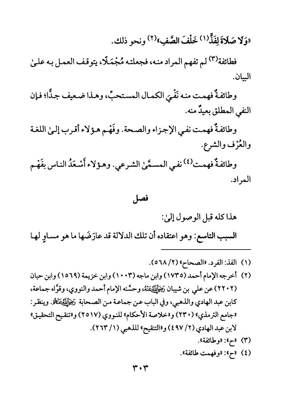 «وَلَا صَلَاةَ لِفَذٍّ (¬١) خَلْفَ الصَّفِ» (¬٢) ونحو ذلك.