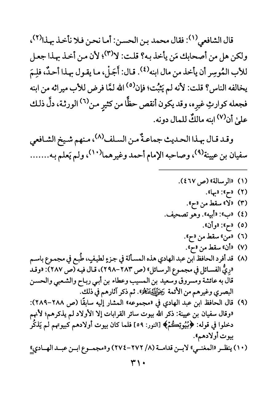 (¬١٠) ينظر «المغني» لابن قدامة (٨/ ٢٧٢ - ٢٧٤) و «مجموع ابن عبد الهادي» (ص ٢٨٥ - ٢٨٦).