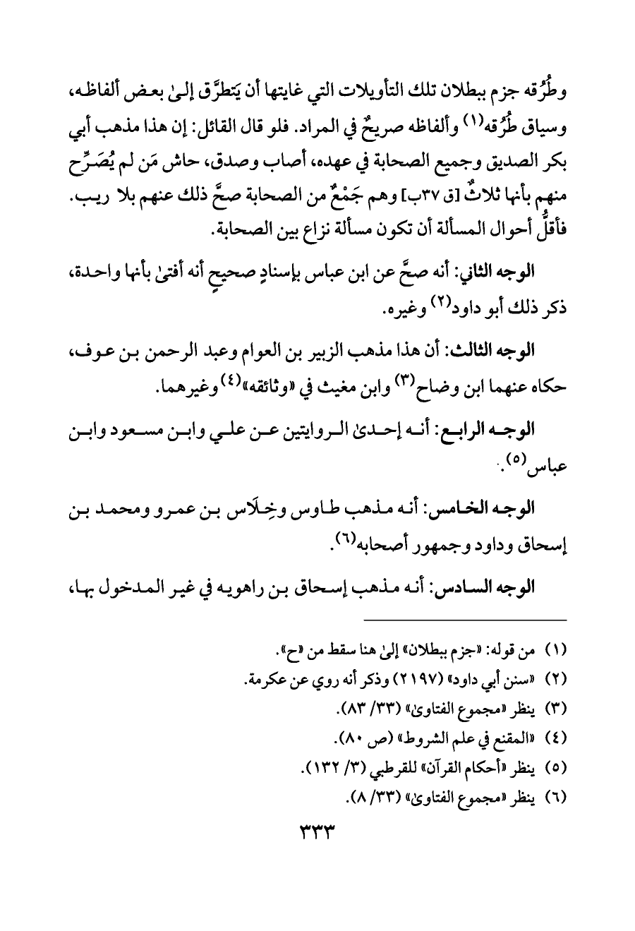 الوجه الخامس: أنه مذهب طاوس وخِلَاس بن عمرو ومحمد بن إسحاق وداود وجمهور أصحابه (¬٦).