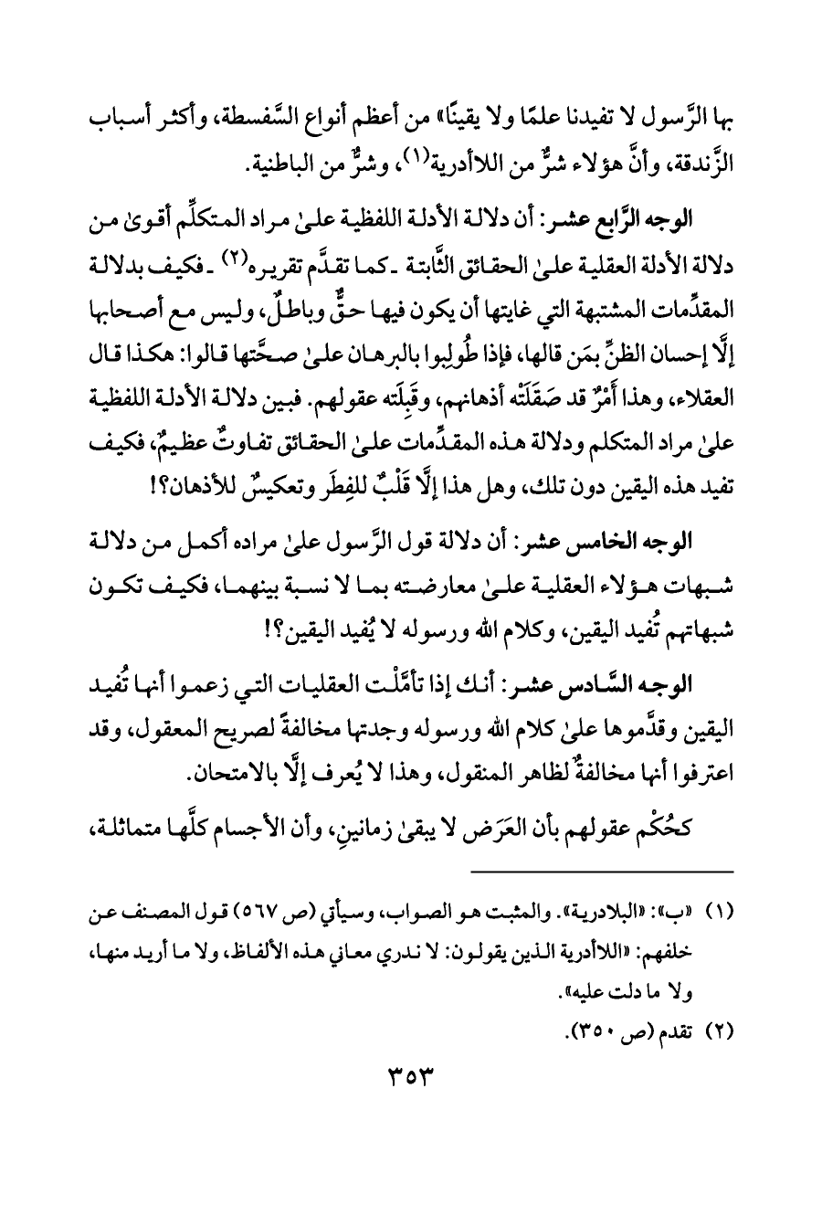 (¬١) «ب»: «البلادرية». والمثبت هو الصواب، وسيأتي (ص ٥٦٧) قول المصنف عن خلفهم: «اللاأدرية الذين يقولون: لا ندري معاني هذه الألفاظ، ولا ما أريد منها، ولا ما دلت عليه».