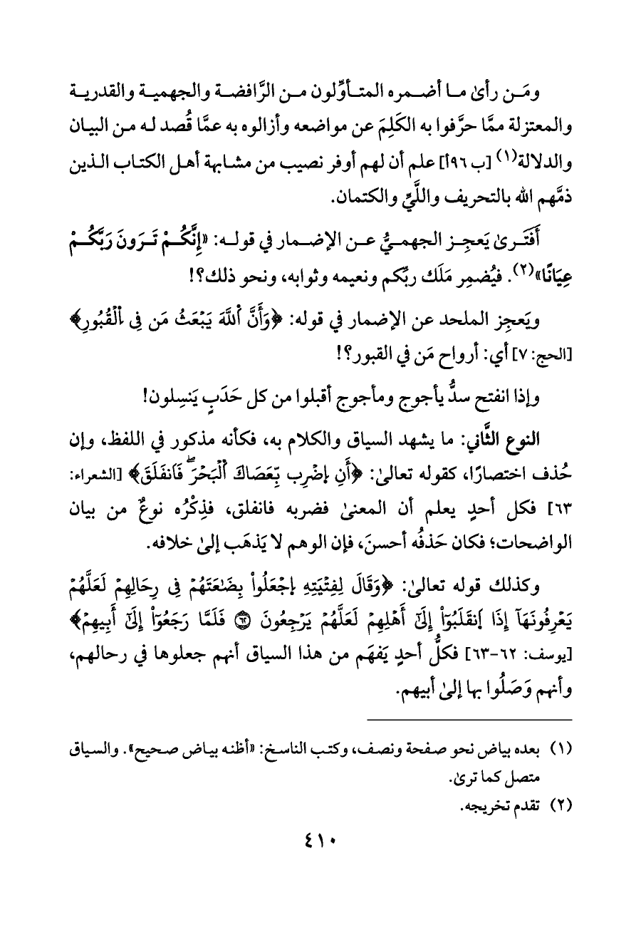 أَفَتَرى يَعجِز الجهميُّ عن الإضمار في قوله: «إِنَّكُمْ تَرَونَ رَبَّكُمْ عِيَانًا» (¬٢). فيُضمِر مَلَك ربِّكم ونعيمه وثوابه، ونحو ذلك؟!