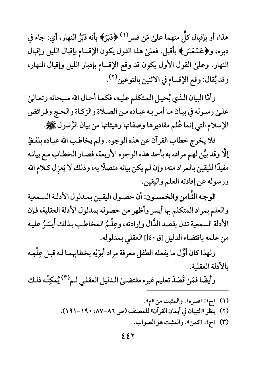 (¬٢) ينظر «التبيان في أيمان القرآن» للمصنف (ص ٨٦ - ٨٧، ١٩٠ - ١٩١).