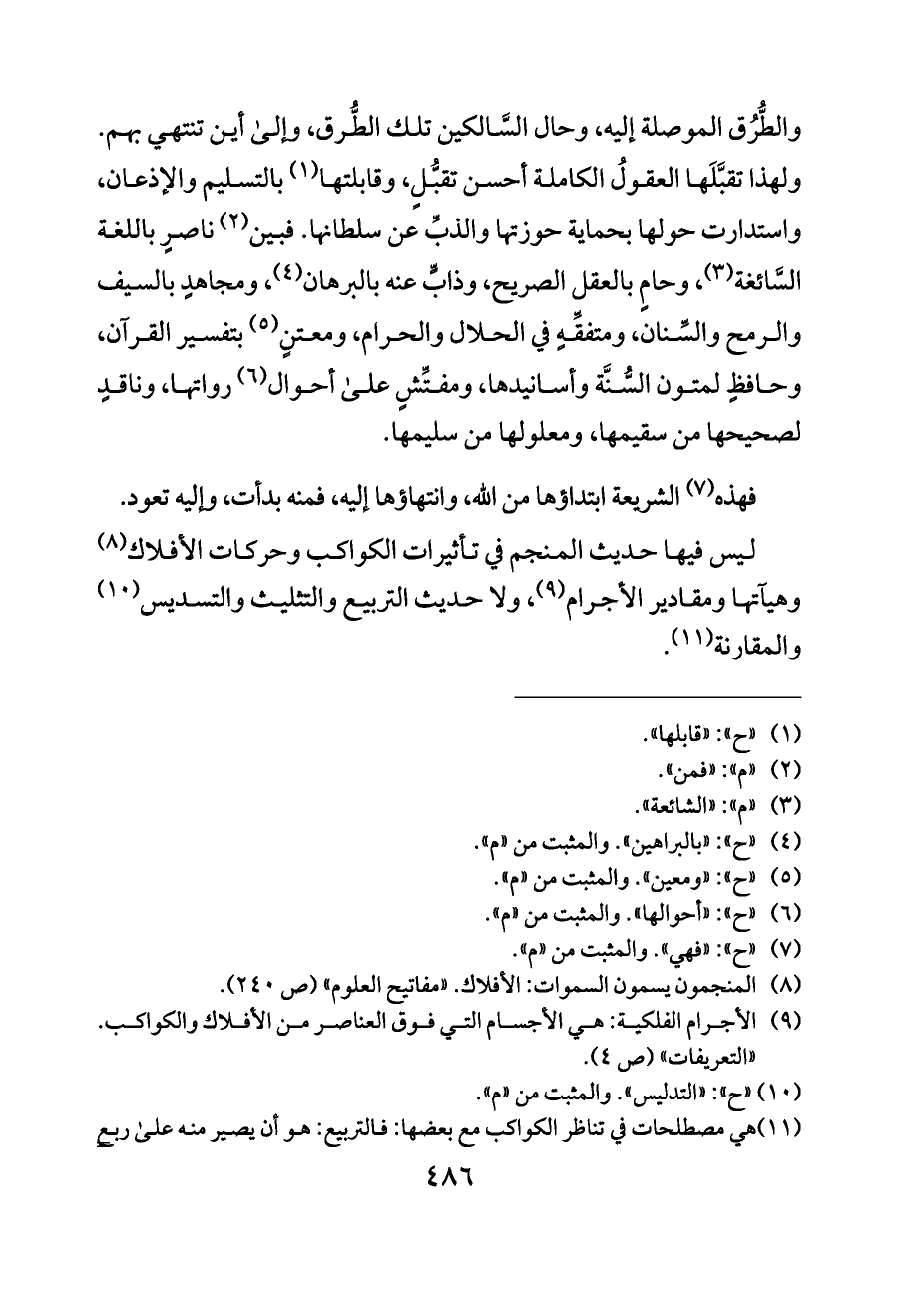 ليس فيها حديث المنجم في تأثيرات الكواكب وحركات الأفلاك (¬٨) وهيآتها ومقادير الأجرام (¬٩)، ولا حديث التربيع والتثليث والتسديس (¬١٠) والمقارنة (¬١١).