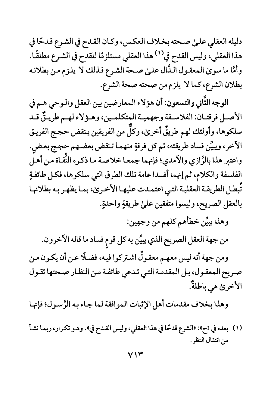 (¬١) بعده في «ح»: «الشرع قدحًا في هذا العقلي، وليس القدح في». وهو تكرار، ربما نشأ من انتقال النظر.