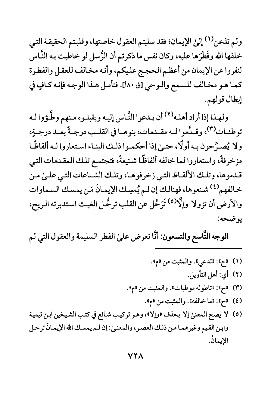 (¬٥) لا يصح المعنى إلا بحذف «وإلا»، وهو تركيب شائع في كتب الشيخين ابن تيمية وابن القيم وغيرهما من ذلك العصر، والمعنى: إن لم يمسك الله الإيمانَ ترحل الإيمانُ.