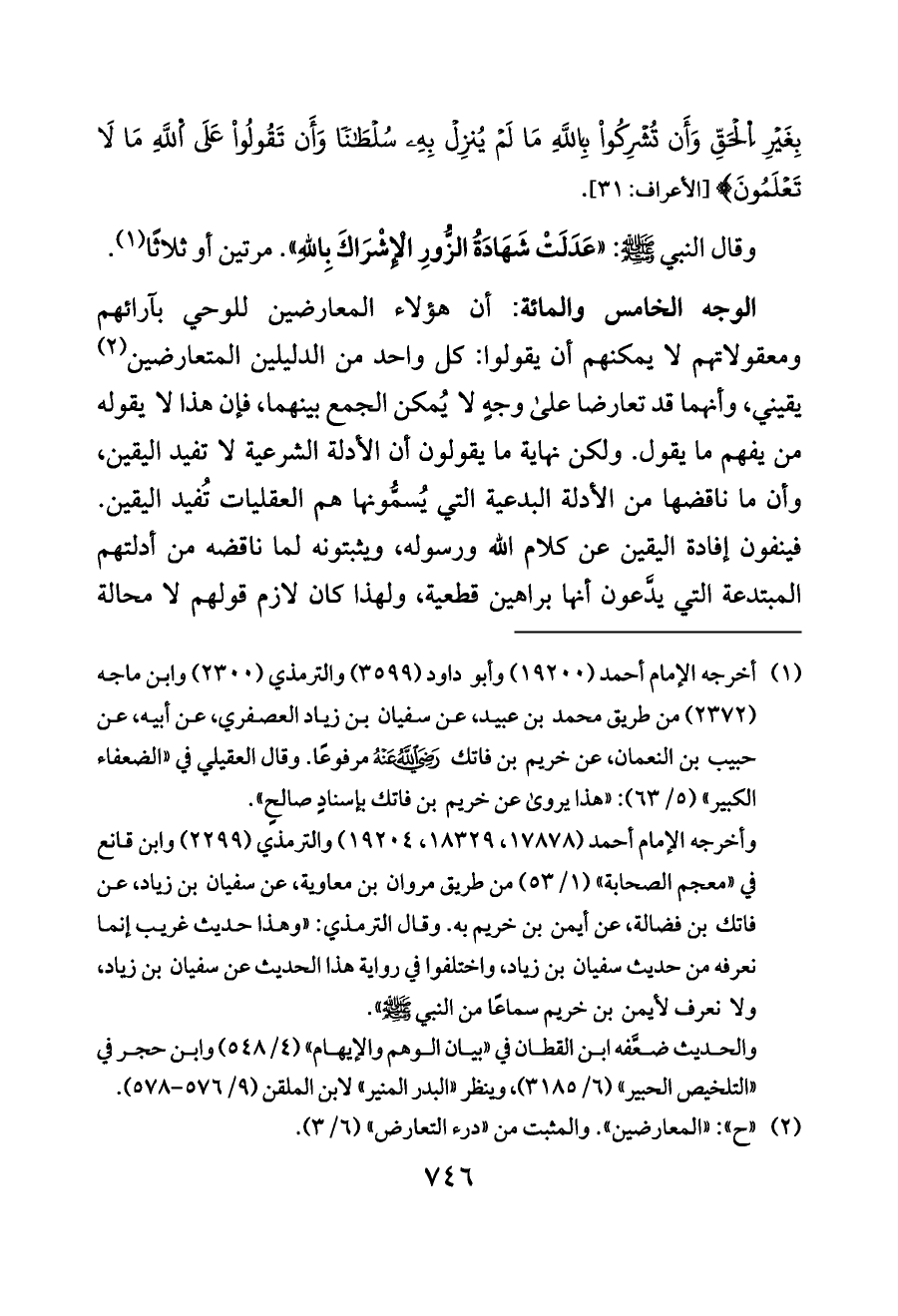(¬٢) «ح»: «المعارضين». والمثبت من «درء التعارض» (٦/ ٣).
