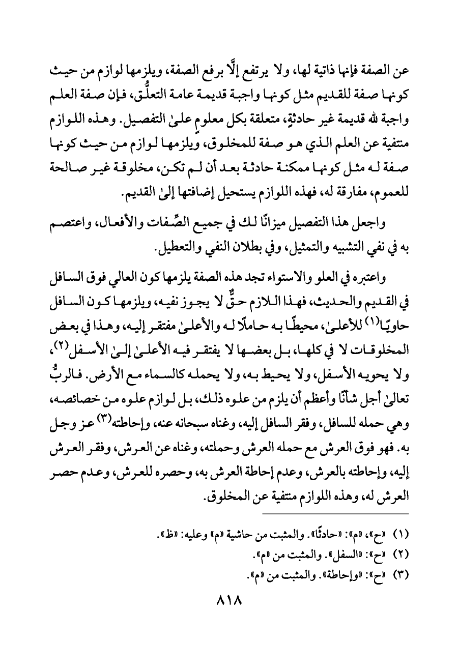 واجعل هذا التفصيل ميزانًا لك في جميع الصِّفات والأفعال، واعتصم به في نفي التشبيه والتمثيل، وفي بطلان النفي والتعطيل.